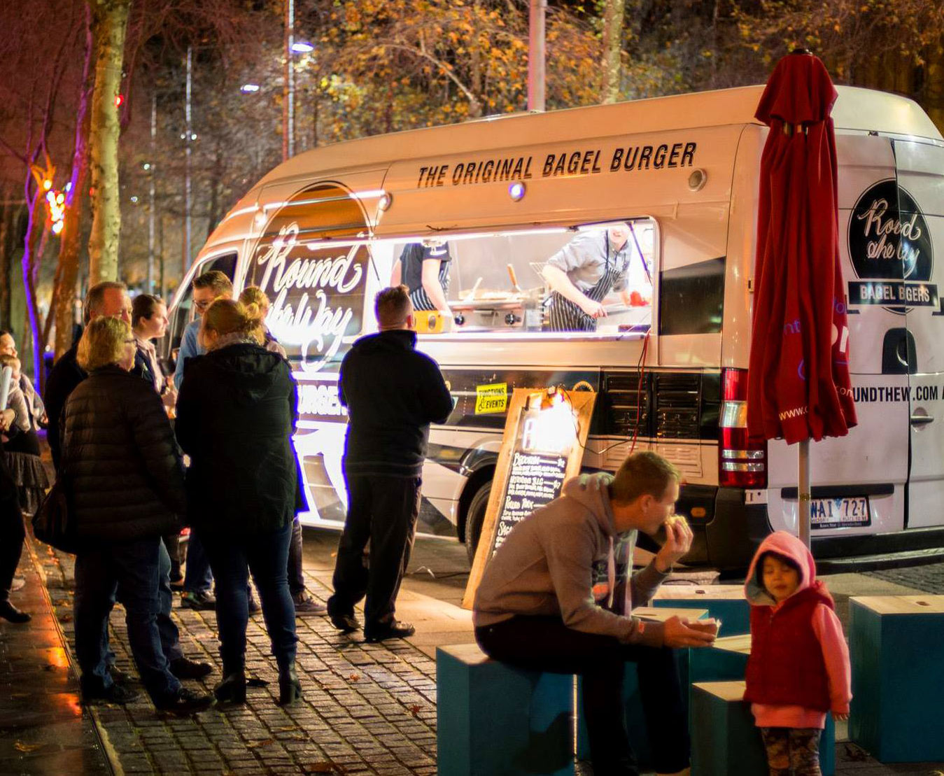WHEN RYAN SLATER AND PETER MARIOS ESTABLISHED ROUND THE WAY BAGELS IN 2012, THE BUSINESS WAS AT THE FOREFRONT OF THE "GOURMET FOOD TRUCK" MOVEMENT IN AUSTRALIA. SINCE THEN, ROUND THE WAY HAS ESTABLISHED THEMSELVES AS LEADERS IN THE FOOD TRUCK AND CATERING INDUSTRY, SPECIALISING IN WEDDING CATERING AND PRIVATE FUNCTIONS. SERVICED AREAS INCLUDE: MELBOURNE, BALLARAT, GEELONG, DAYLESFORD AND COUNTRY VICTORIA.